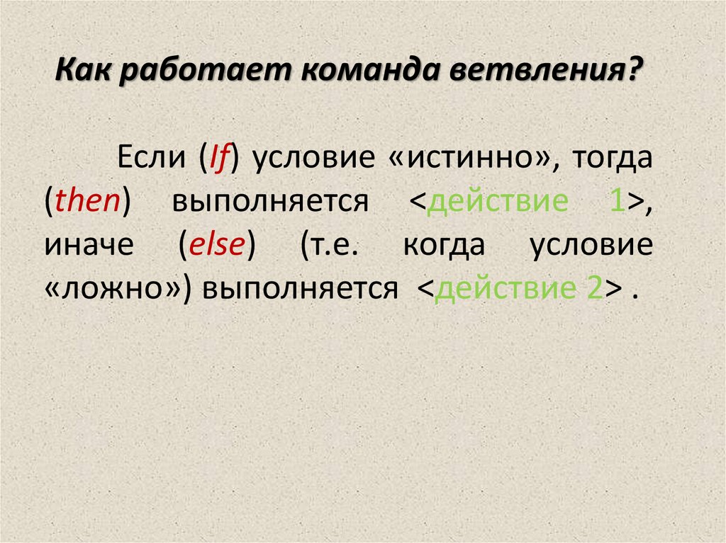 Как работает команда ветвления?Если (If) условие «истинно», тогда