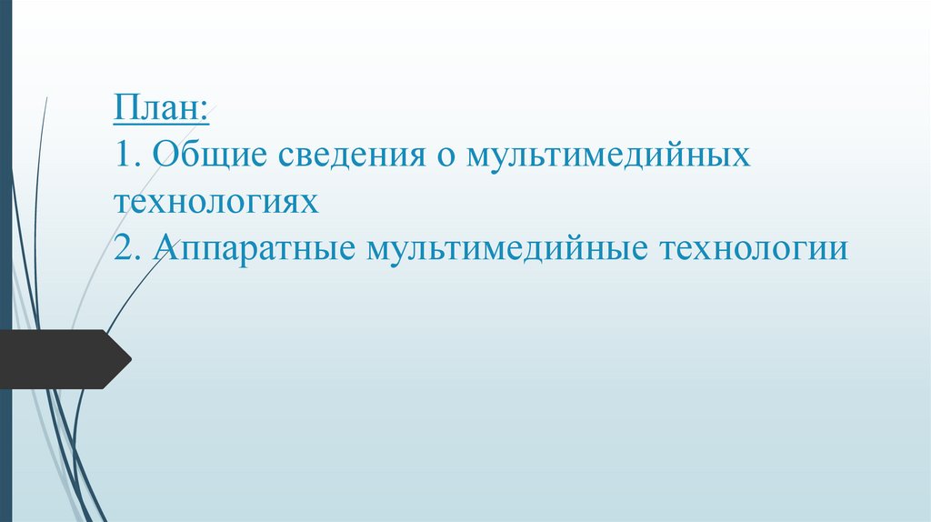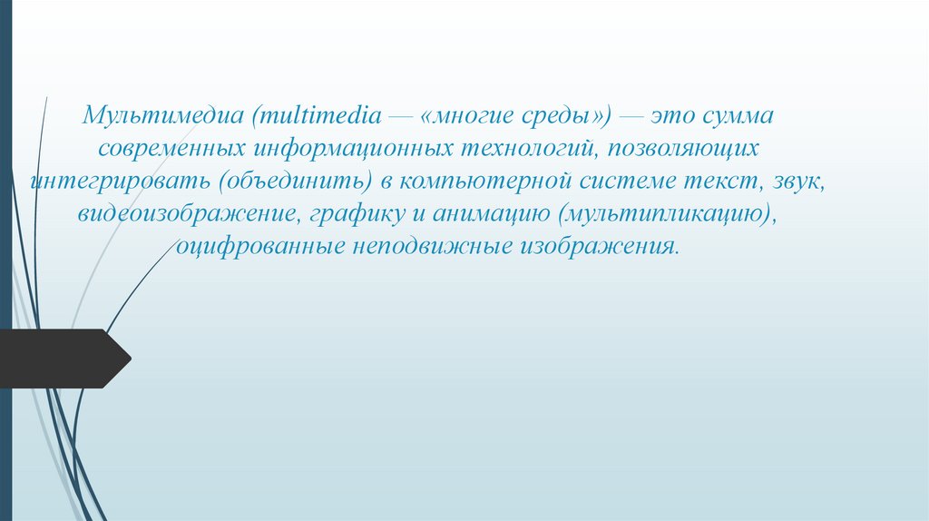 Мультимедиа (multimedia — «многие среды») — это суммасовременных информационных технологий, позволяющих