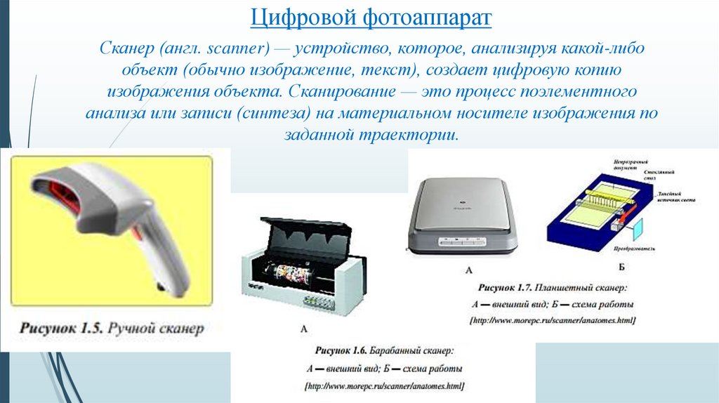 Цифровой фотоаппаратСканер (англ. scanner) — устройство, которое, анализируя какой-либо
