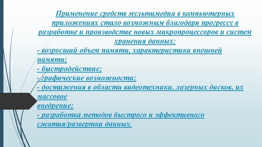 Применение средств мультимедиа в компьютерныхприложениях стало возможным благодаря прогрессу в
