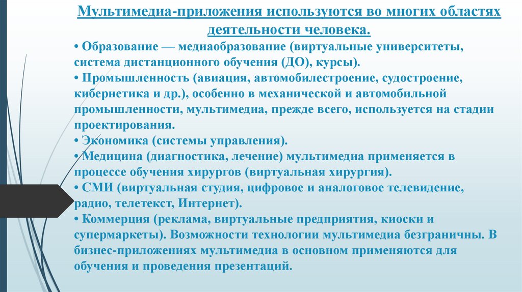 Мультимедиа-приложения используются во многих областяхдеятельности человека.