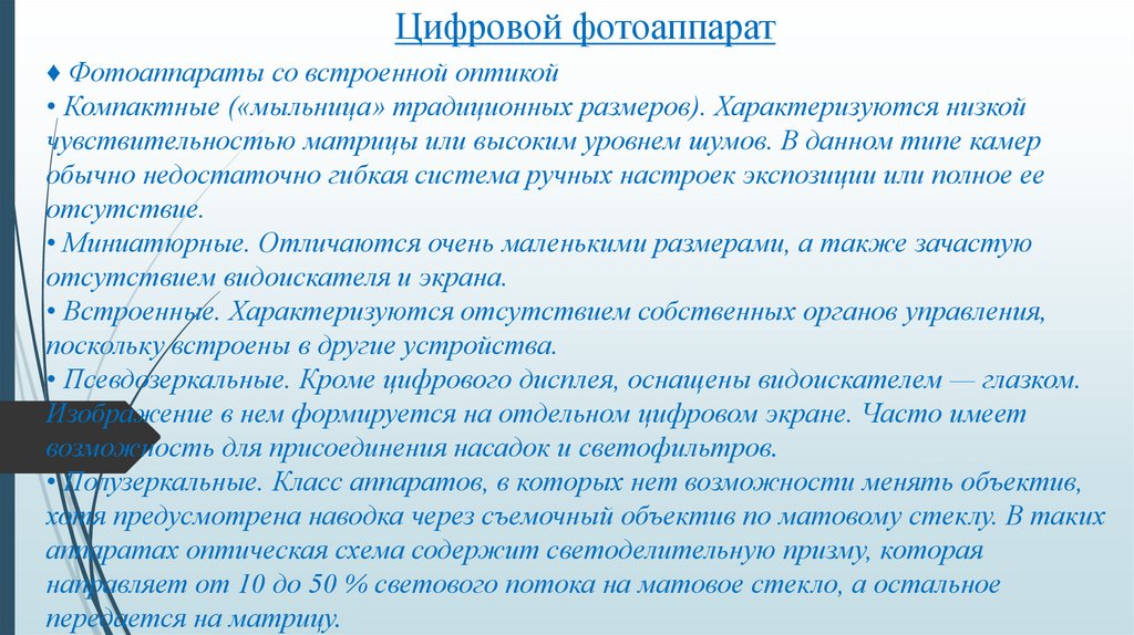 Цифровой фотоаппарат♦ Фотоаппараты со встроенной оптикой