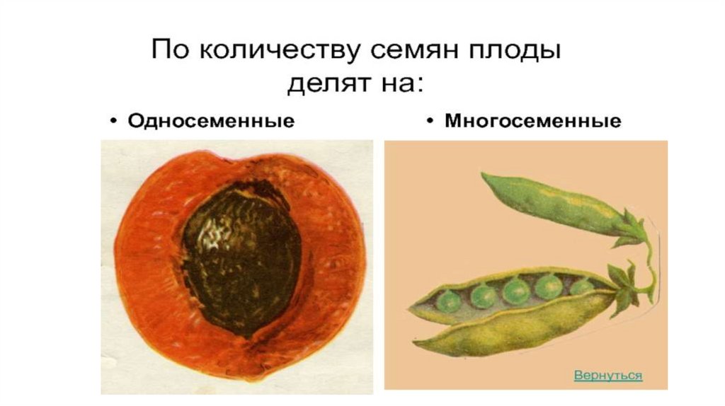 1) ПО КОЛИЧЕСТВУ СЕМЯН2) ПО ХАРАКТЕРУ ОКОЛОПЛОДНИКА