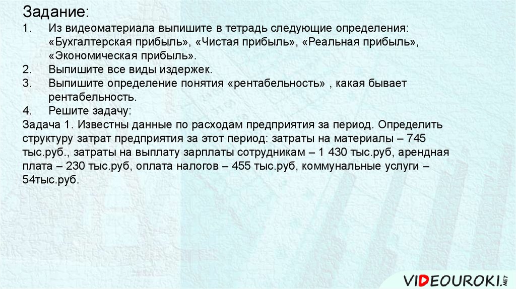 Задание:Из видеоматериала выпишите в тетрадь следующие определения: