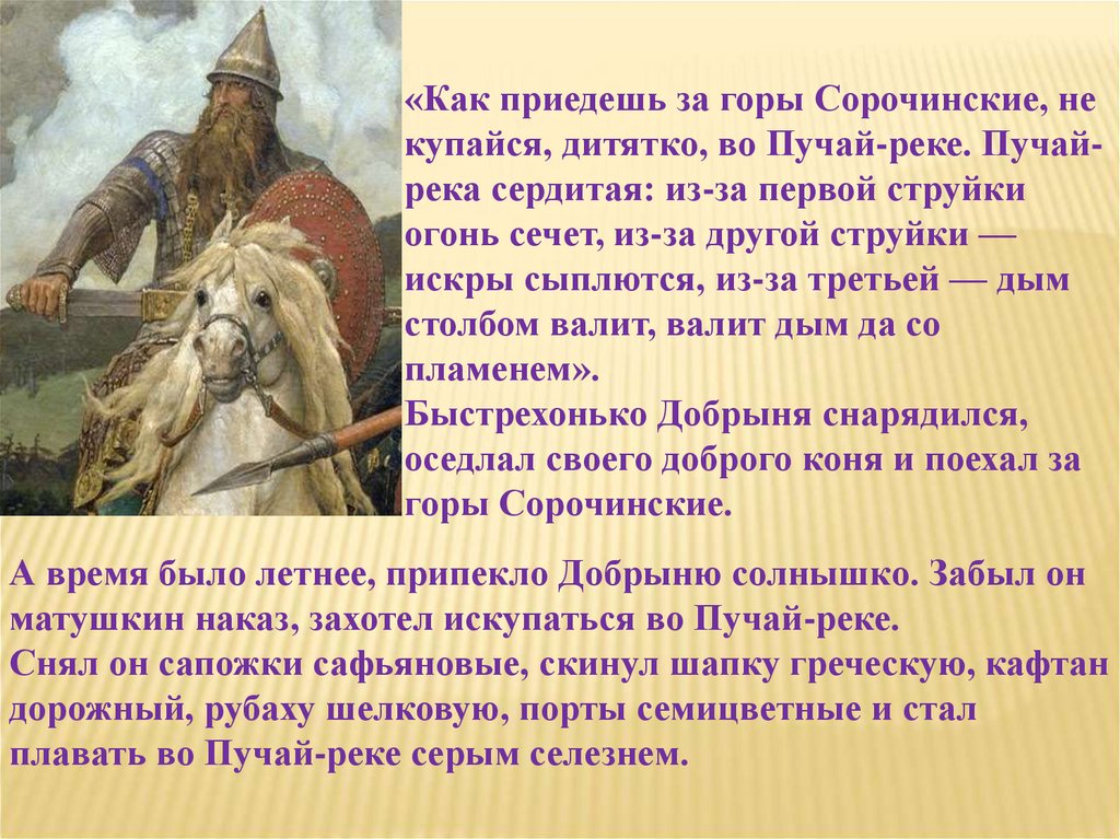 Добрыня до крутого бережка,