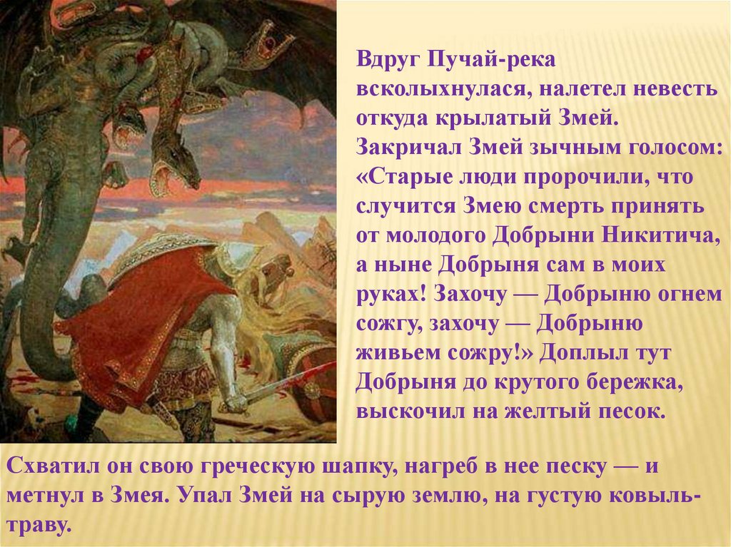 метнул в Змея. Упал Змей на сырую землю, на густую ковыльтраву.