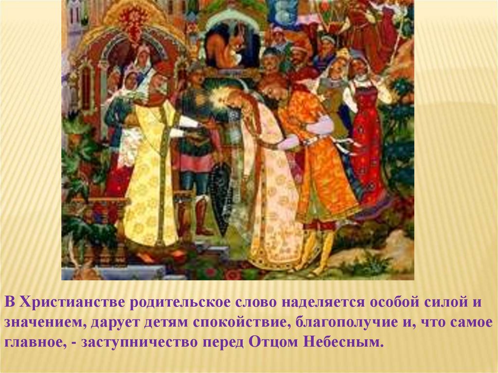 В Христианстве родительское слово наделяется особой силой изначением, дарует детям спокойствие, благополучие и, что самое