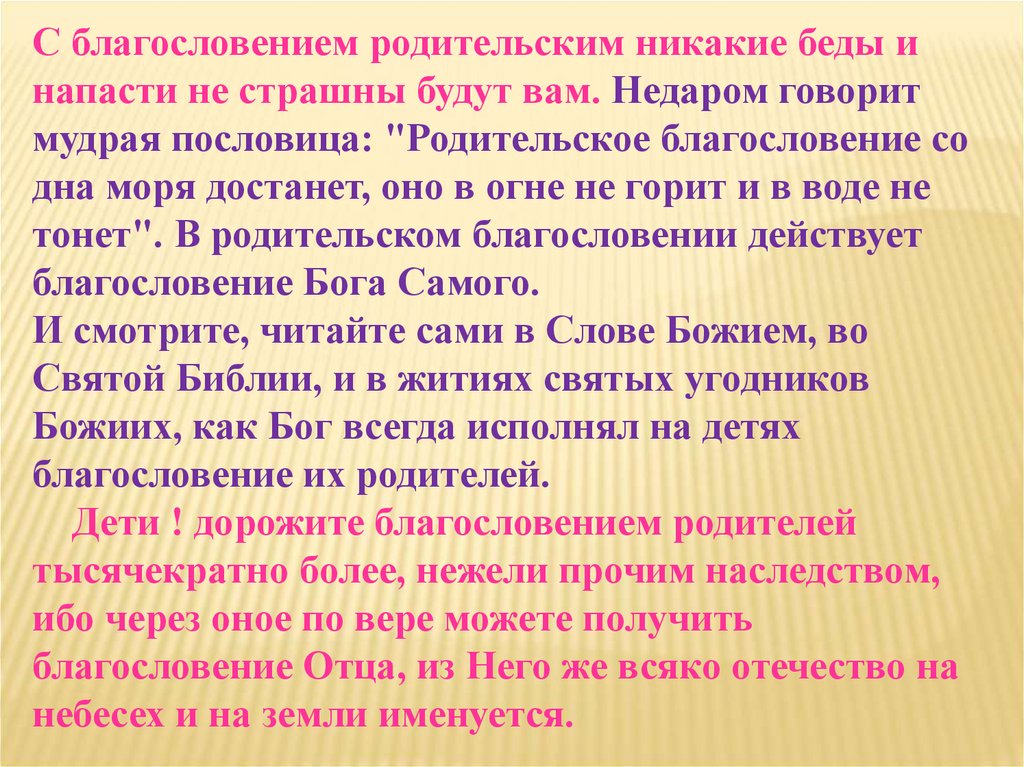 С благословением родительским никакие беды инапасти не страшны будут вам. Недаром говорит