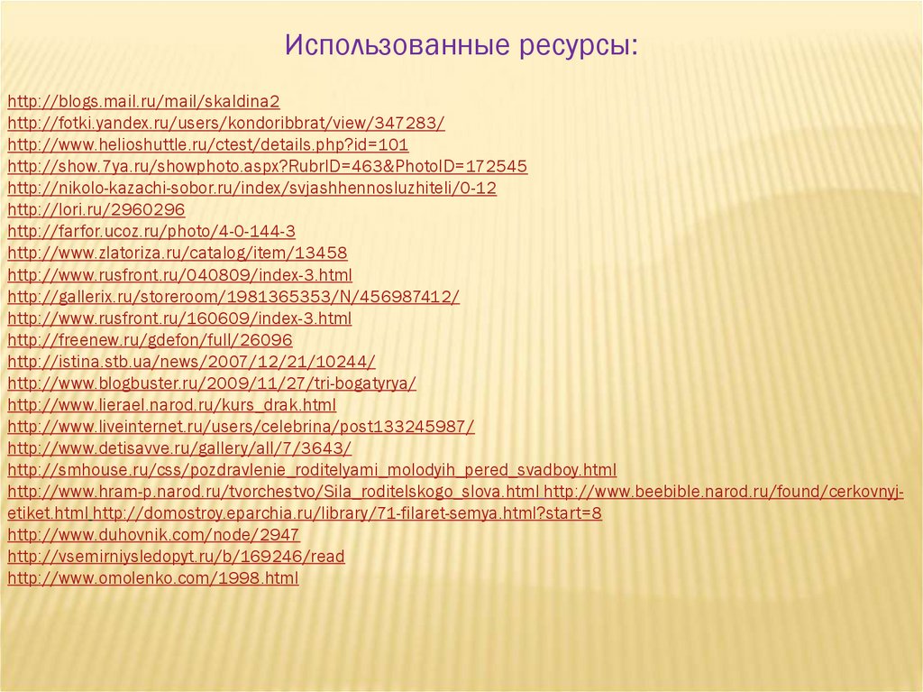 http://www.hram-p.narod.ru/tvorchestvo/Sila_roditelskogo_slova.html http://www.beebible.narod.ru/found/cerkovnyjetiket.html http://domostroy.eparchia.ru/library/71-filaret-semya.html?start=8