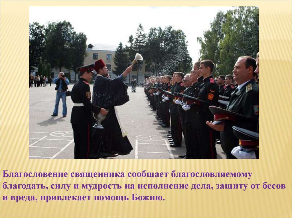 Благословение священника сообщает благословляемомублагодать, силу и мудрость на исполнение дела, защиту от бесов