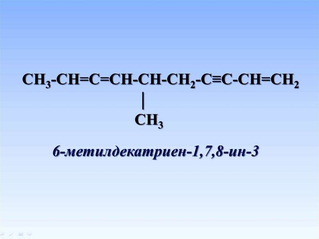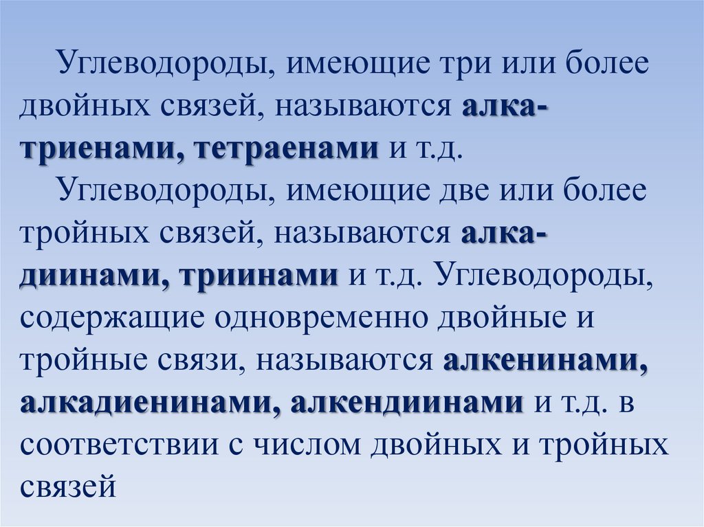 Углеводороды, имеющие три или болеедвойных связей, называются алкатриенами, тетраенами и т.д.