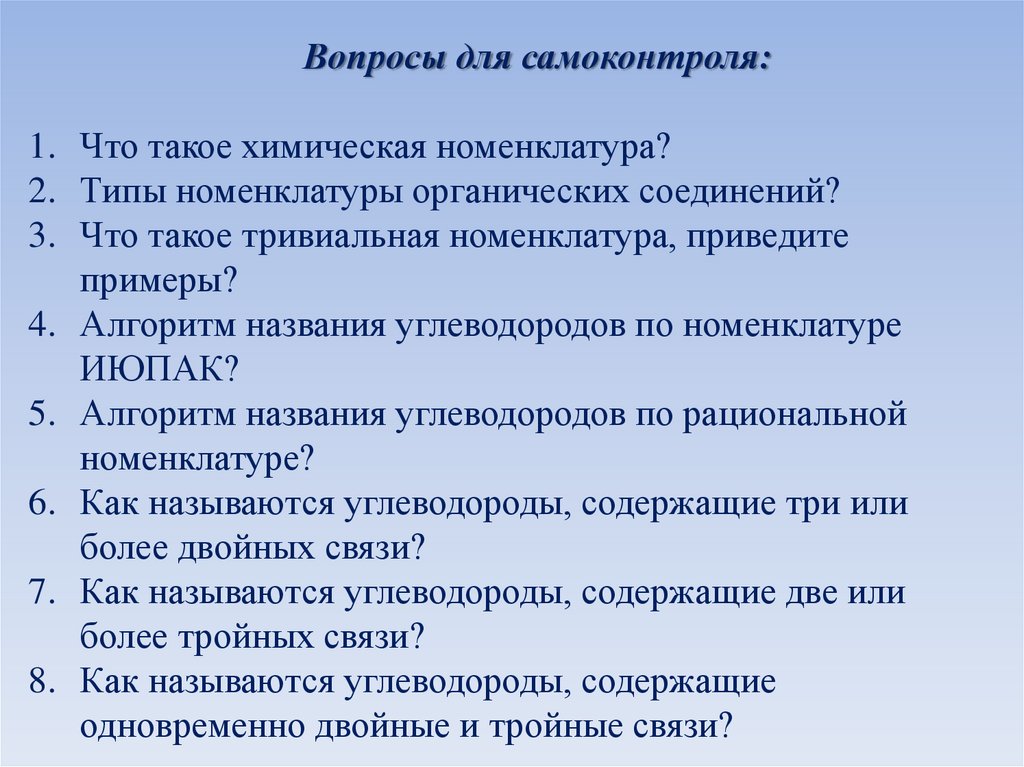 Вопросы для самоконтроля:1. Что такое химическая номенклатура?