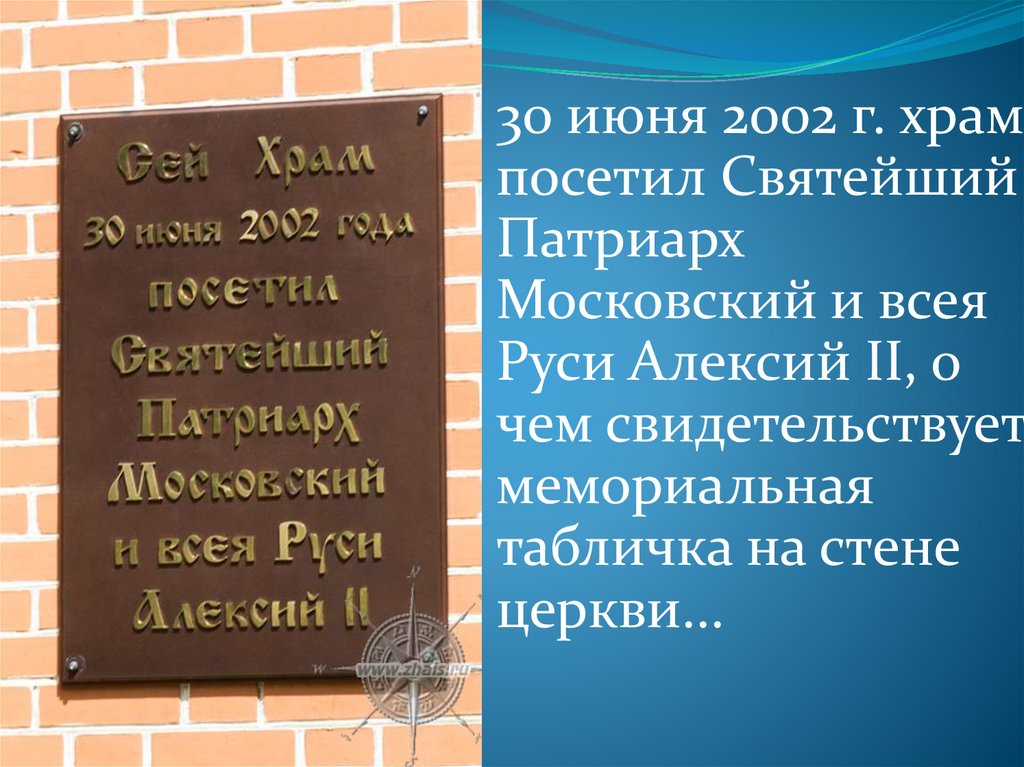 30 июня 2002 г. хрампосетил Святейший