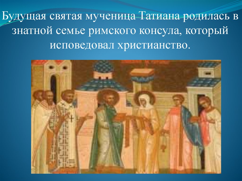 Будущая святая мученица Татиана родилась взнатной семье римского консула, который