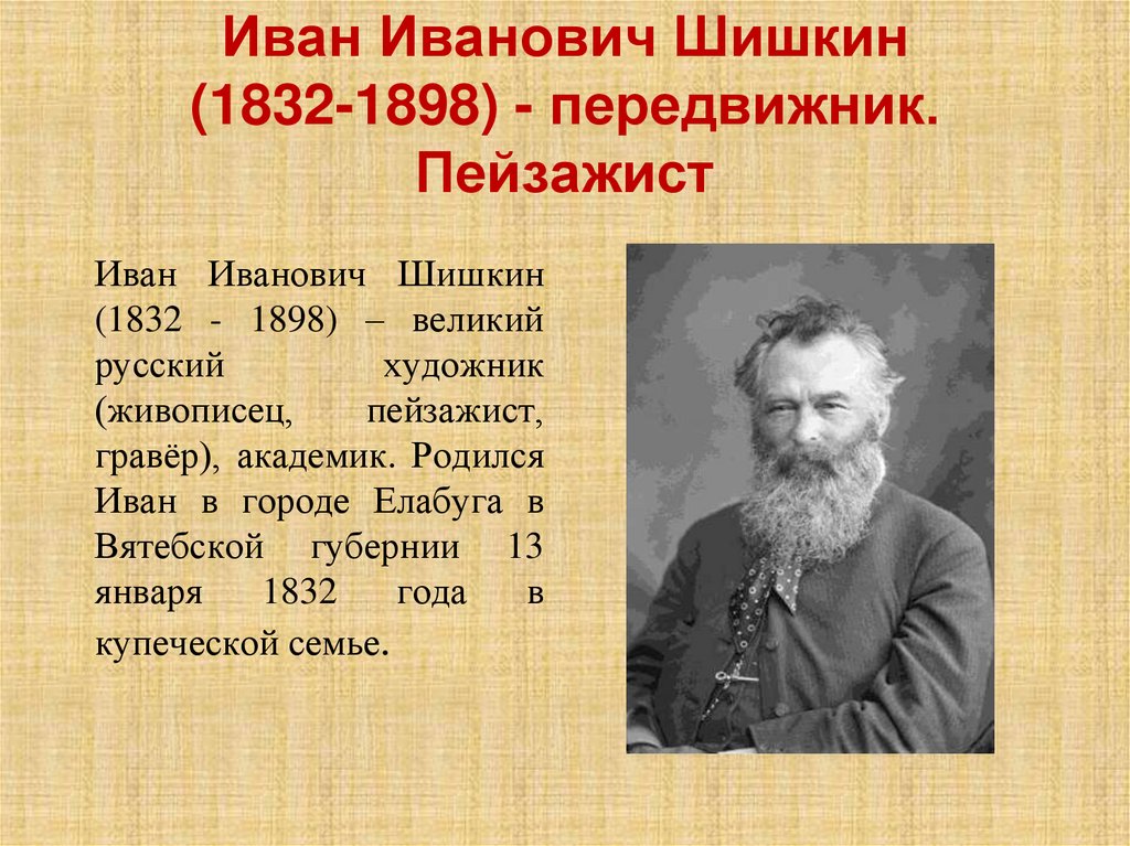 Иван Иванович Шишкин(1832-1898) - передвижник.