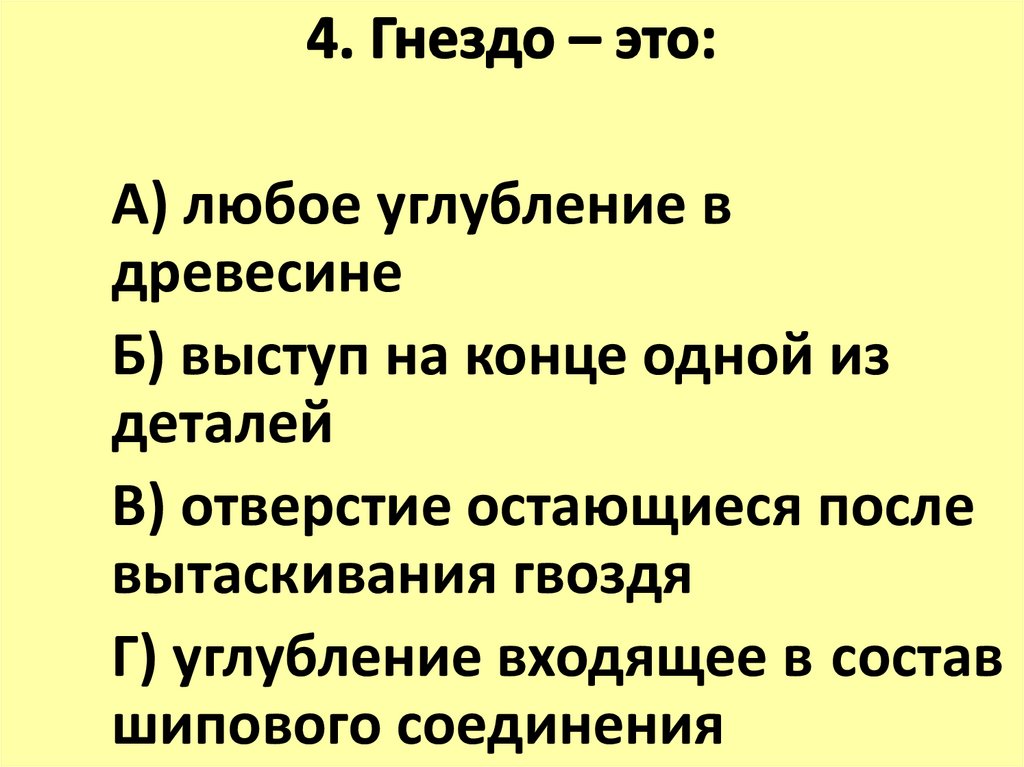 А) любое отверстие в древесинеБ) выступ на конце одной из
