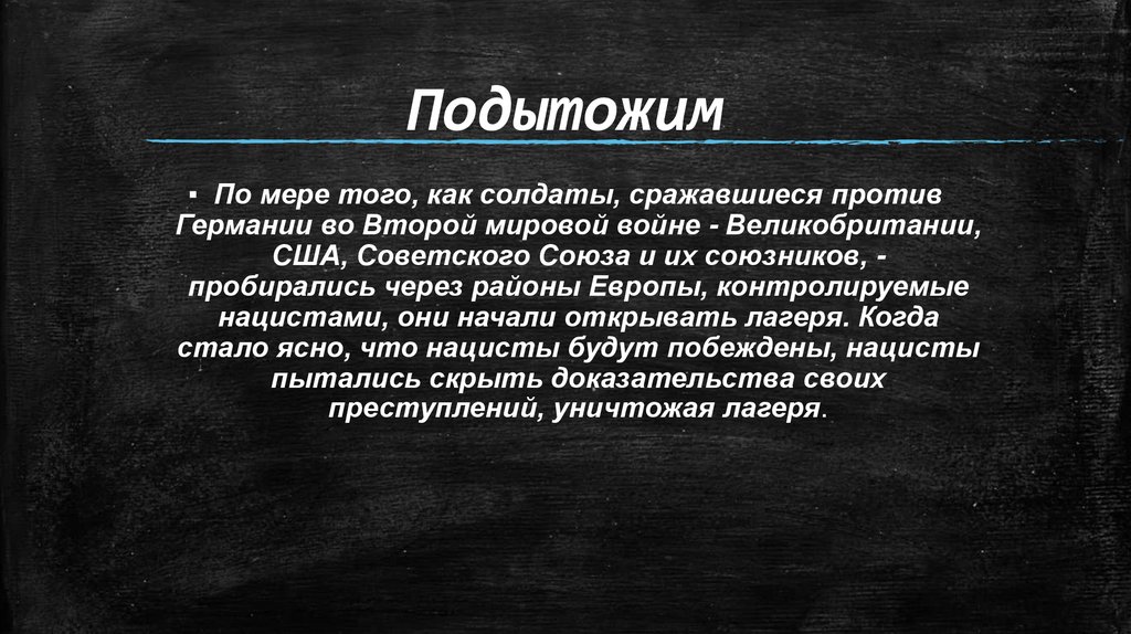 Подытожим▪ По мере того, как солдаты, сражавшиеся против