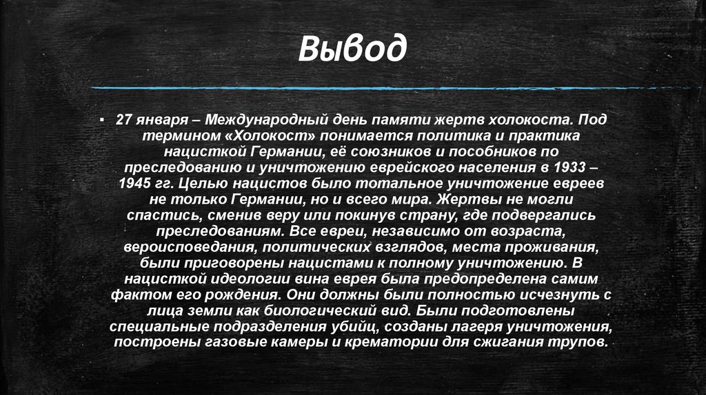 Вывод▪ 27 января – Международный день памяти жертв холокоста. Под
