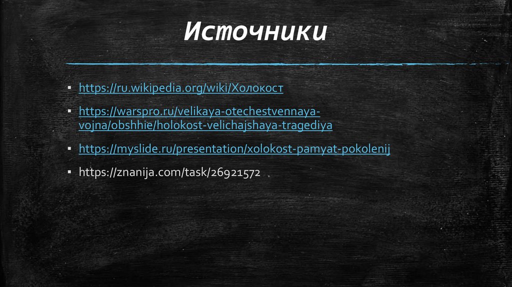 Источники▪ https://ru.wikipedia.org/wiki/Холокост