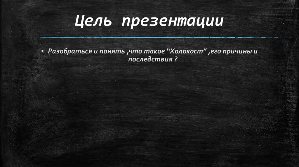 Цель презентации▪ Разобраться и понять ,что такое “Холокост” ,его причины и