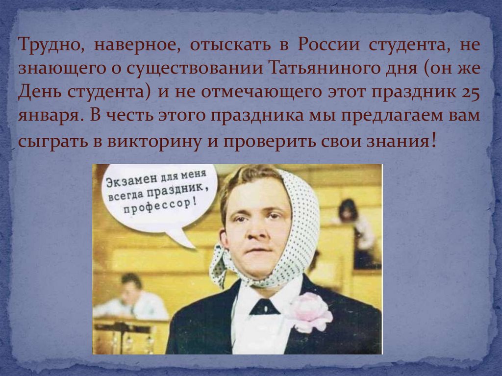 Трудно, наверное, отыскать в России студента, незнающего о существовании Татьяниного дня (он же