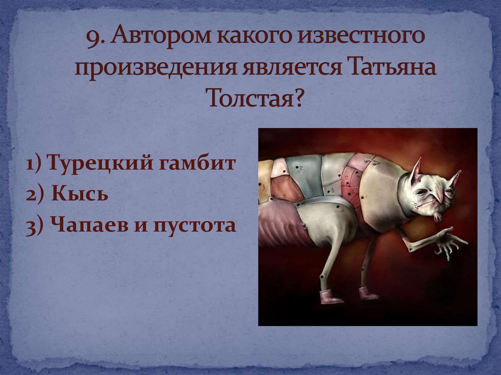 1) Турецкий гамбит2) Кысь