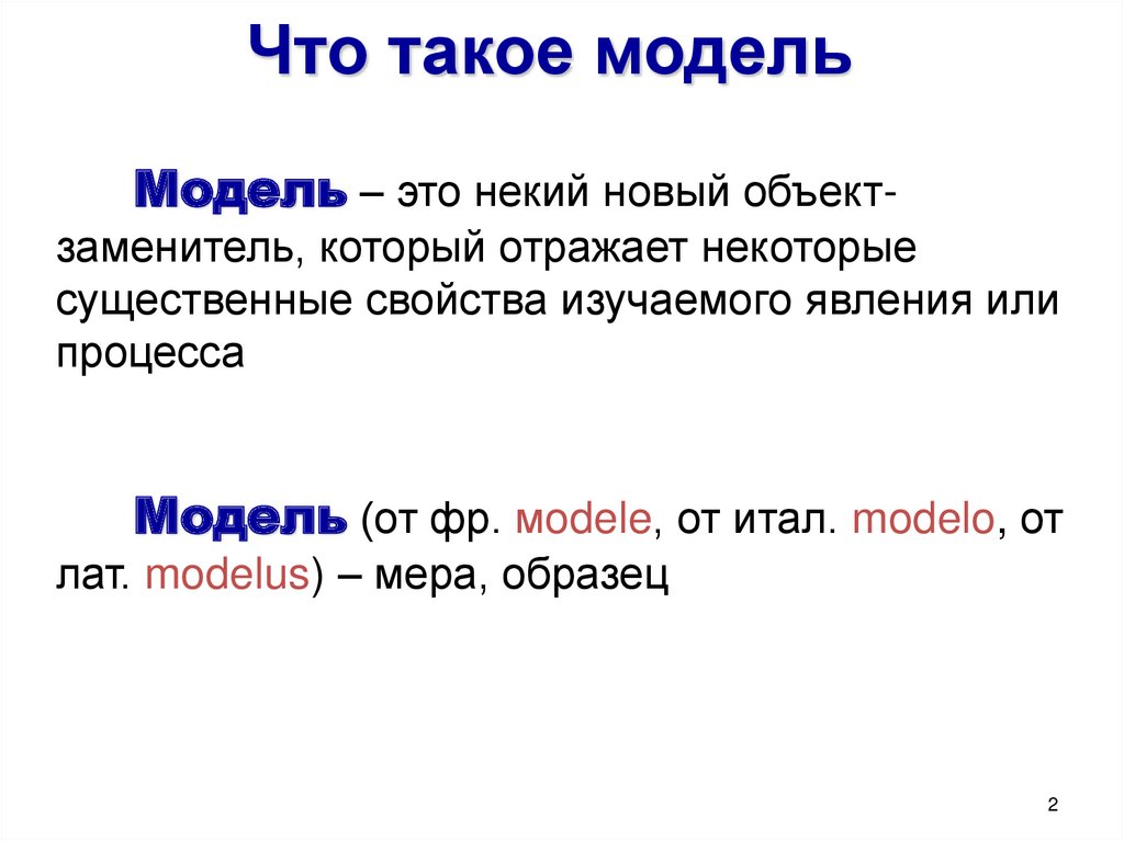 Что такое модельМодель – это некий новый объектзаменитель, который отражает некоторые