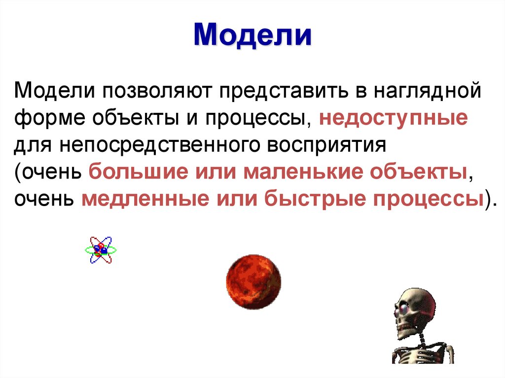 МоделиМодели позволяют представить в наглядной