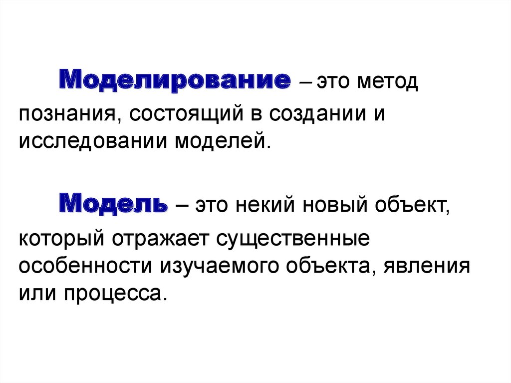 Моделирование – это методпознания, состоящий в создании и