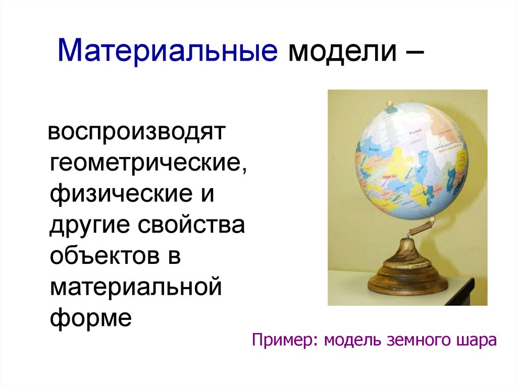 Материальные модели –воспроизводят