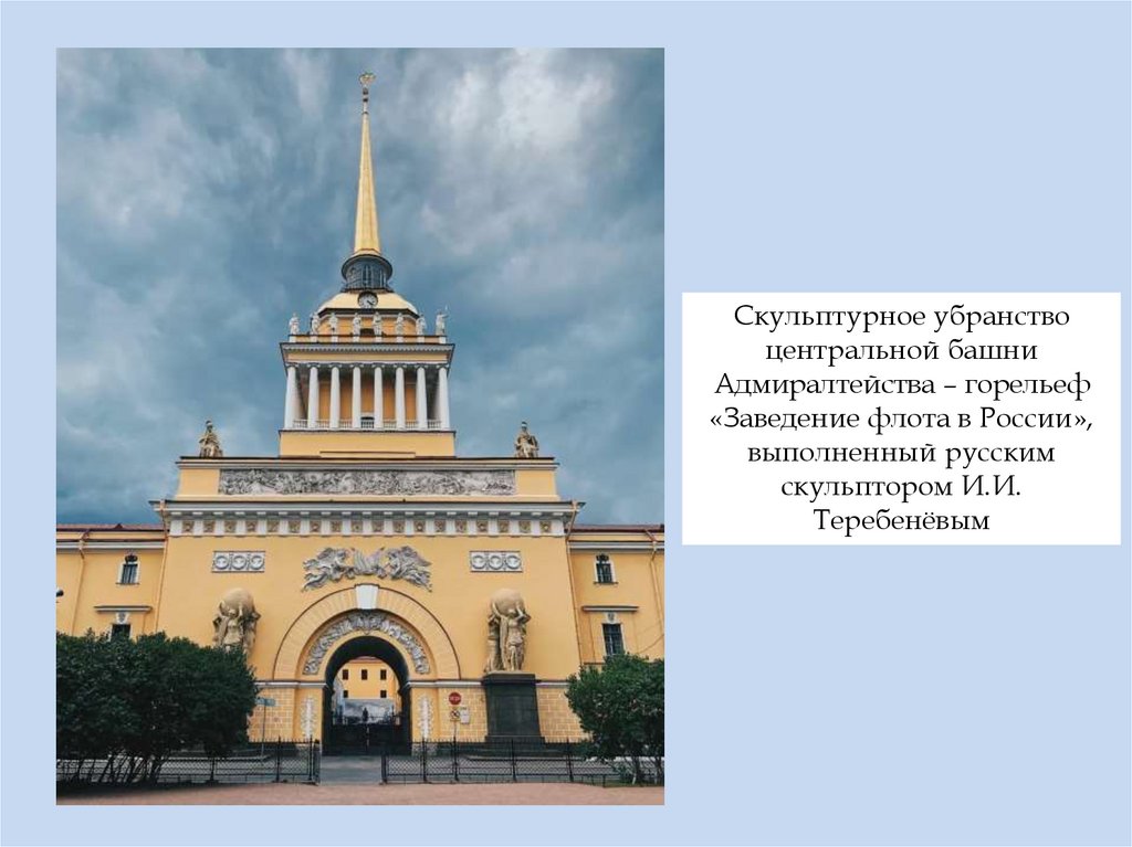 На горельефе, украшающем арку главной башни Адмиралтейства,