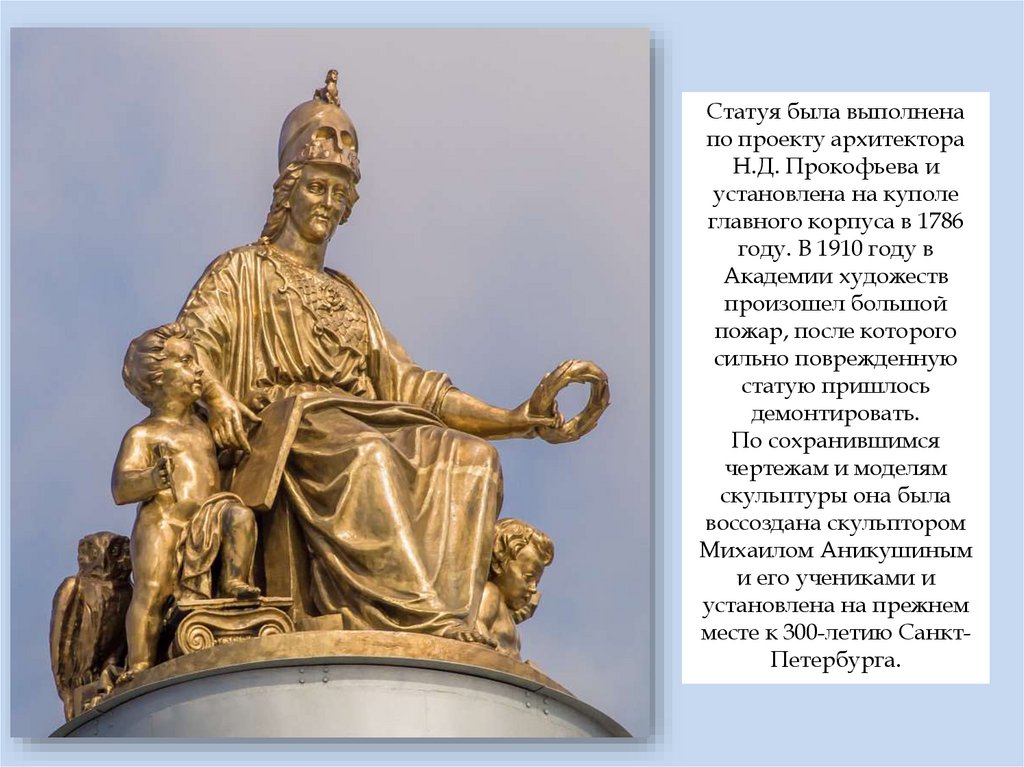 Академия художеств. Центральная часть здания былаувенчана статуей Минервы (Афины), покровительницы