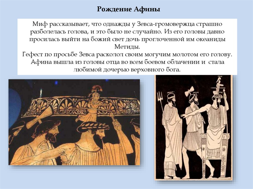 Рождение АфиныМиф рассказывает, что однажды у Зевса-громовержца страшно