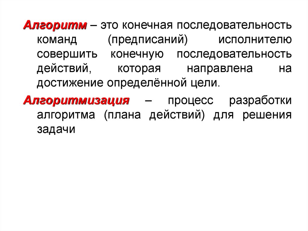 алгоритма (плана действий) для решения