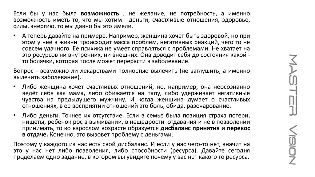 • А теперь давайте на примере. Например, женщина хочет быть здоровой, но при