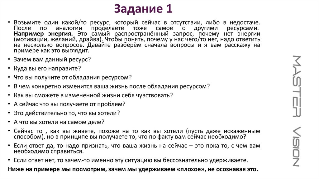 Задание 1• Возьмите один какой/то ресурс, который сейчас в отсутствии, либо в недостаче.