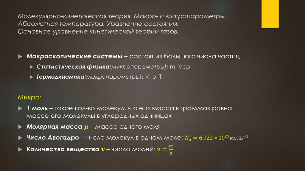 Молекулярно-кинетическая теория. Макро- и микропараметры