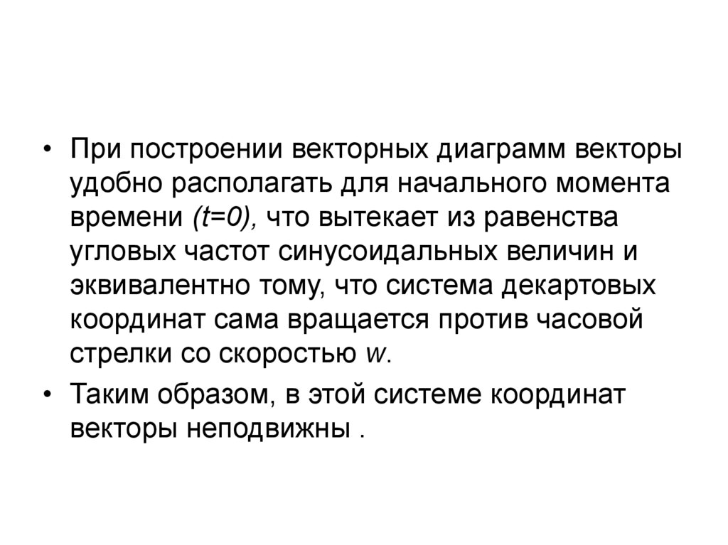 • При построении векторных диаграмм векторыудобно располагать для начального момента