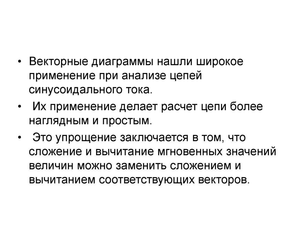 • Векторные диаграммы нашли широкоеприменение при анализе цепей