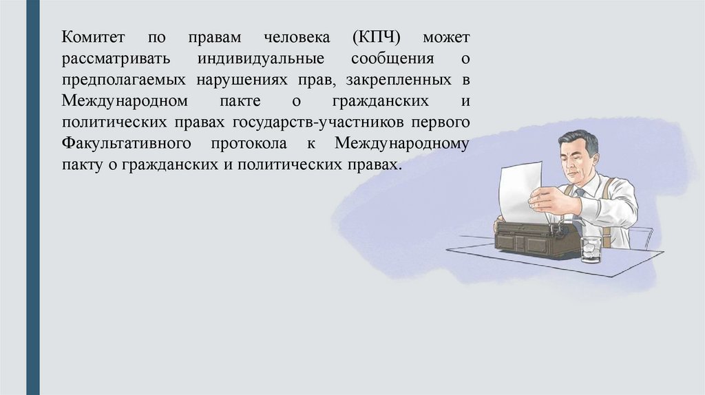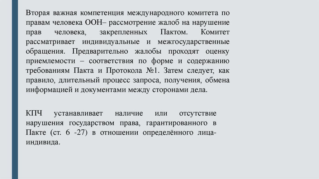 Вторая важная компетенция международного комитета поправам человека ООН– рассмотрение жалоб на нарушение