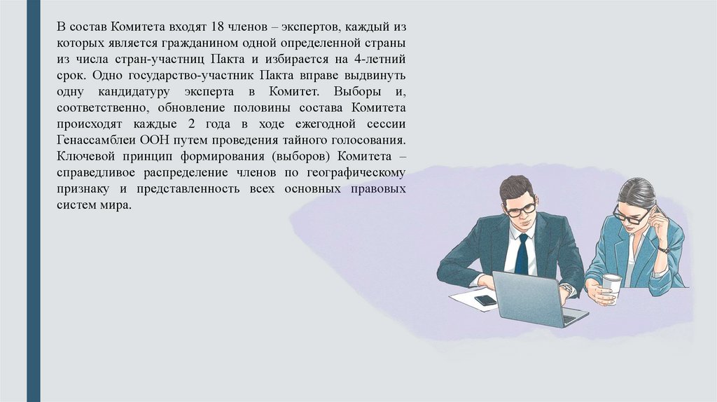 В состав Комитета входят 18 членов – экспертов, каждый изкоторых является гражданином одной определенной страны