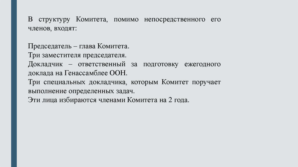Комитета, обычно – раз в 4 года. Для стран, которые только стали