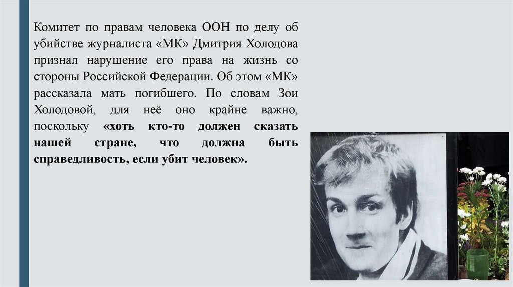 Комитет по правам человека ООН по делу обубийстве журналиста «МК» Дмитрия Холодова