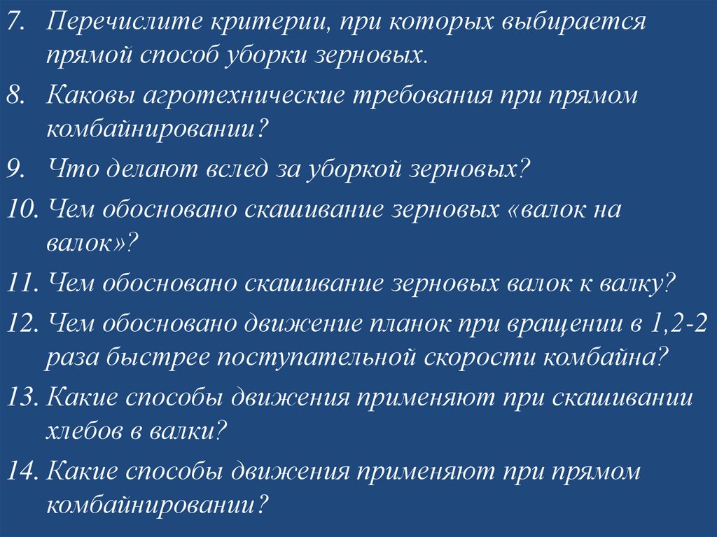 7. Перечислите критерии, при которых выбираетсяпрямой способ уборки зерновых.