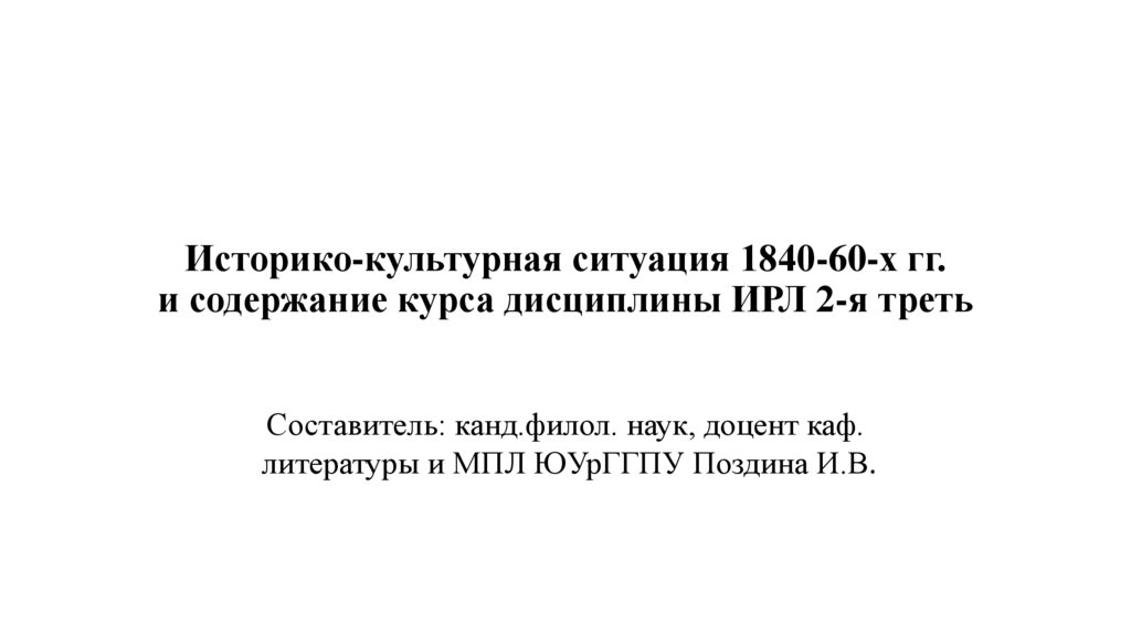 Историко-культурная ситуация 1840-60-х гг.и содержание курса дисциплины ИРЛ 2-я треть