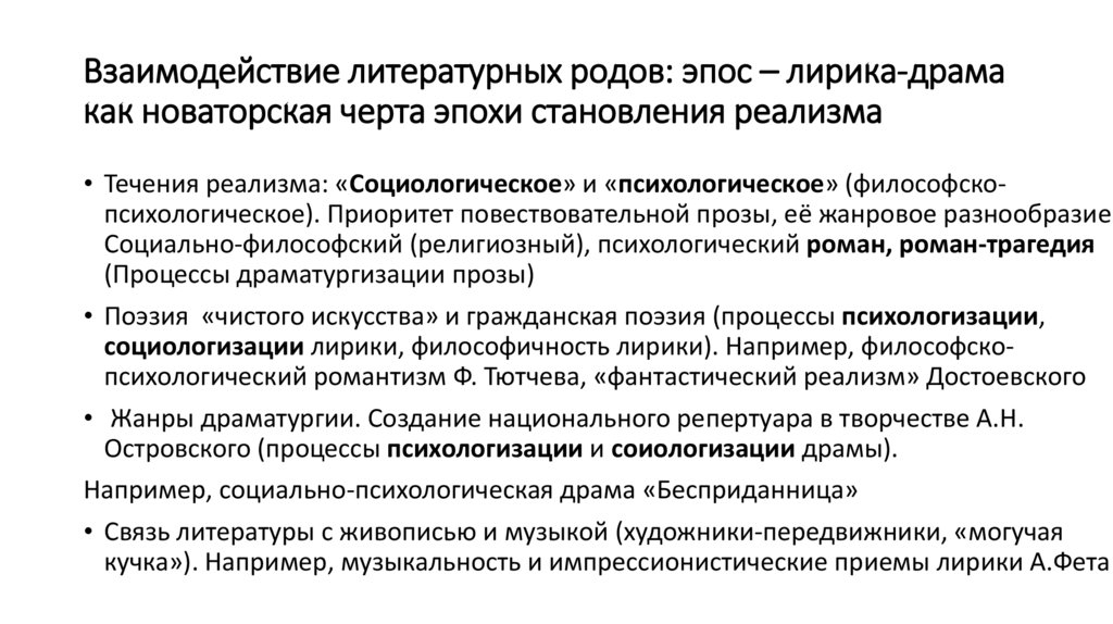 Взаимодействие литературных родов: эпос – лирика-драмакак новаторская черта эпохи становления реализма