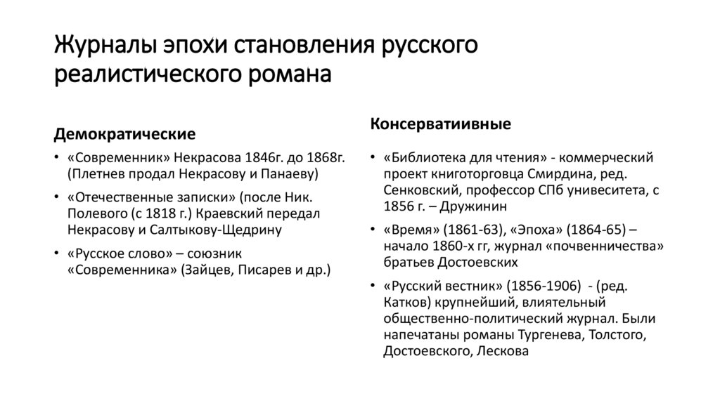 • «Время» (1861-63), «Эпоха» (1864-65) –