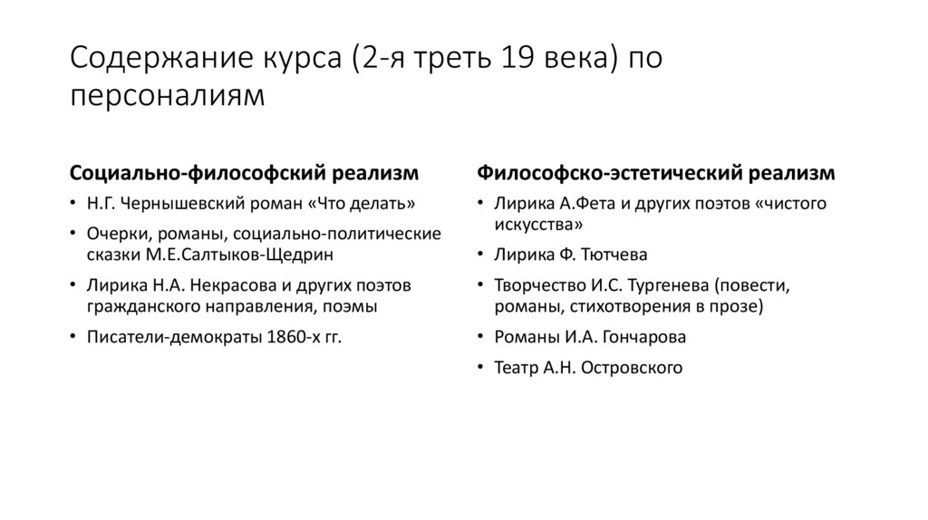 Содержание курса (2-я треть 19 века) поперсоналиям