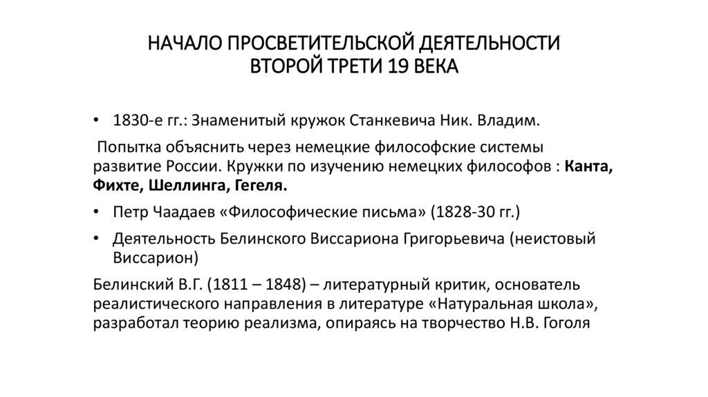 НАЧАЛО ПРОСВЕТИТЕЛЬСКОЙ ДЕЯТЕЛЬНОСТИВТОРОЙ ТРЕТИ 19 ВЕКА