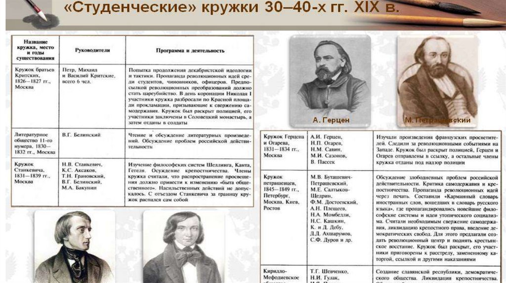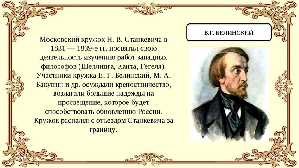 • 1830-е гг.: Знаменитый кружок Станкевича Ник. Владим.